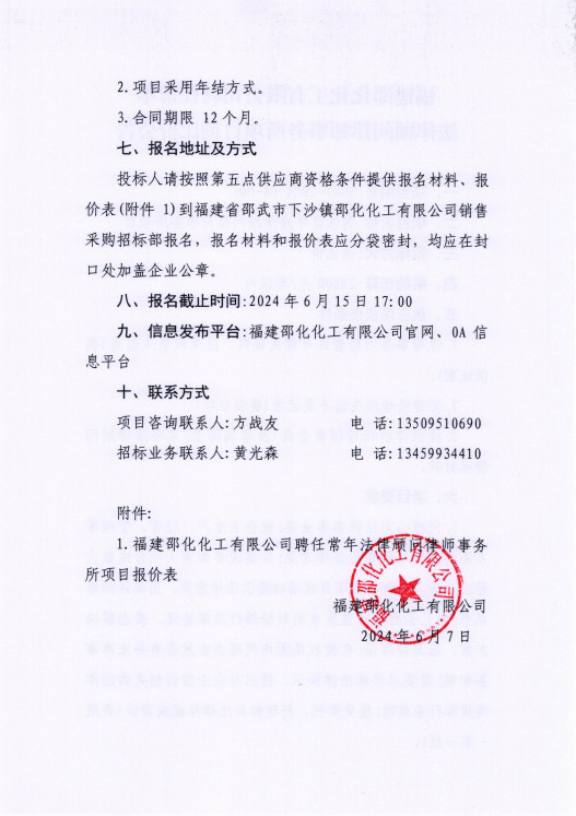 福建邵化化工有限公司聘任常年法律顧問(wèn)律師事務(wù)所項(xiàng)目詢比價(jià)公告